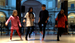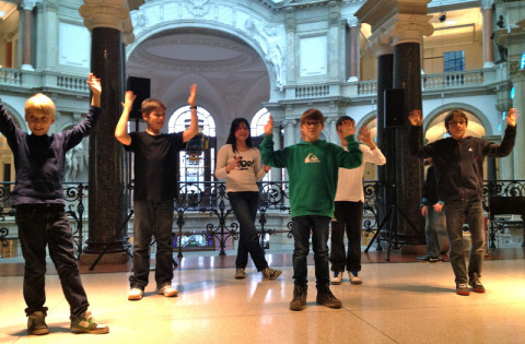Thema der Ausstellung war die interkulturelle Kommunikation. Dazu entwickelte die Klasse D mit dem Künstlerteam eine Performance im Lichthof und im Treppenhaus des Museums für Kommunikation Berlin. Die Kinder haben viele eigene Ideen mitgebracht und voneinander gelernt. Im Museum fühlten sie sich bald wie zu Hause. Die drei Aufführungen im November 2012 waren sehr gut besucht und fanden bei allen Altersgruppen großen Anklang.